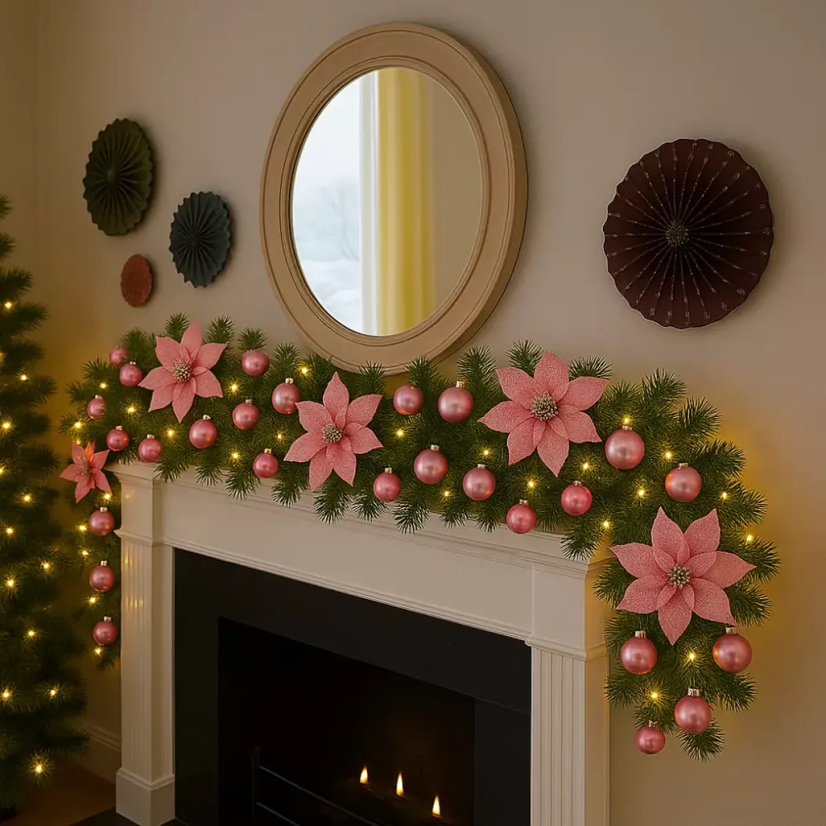 Božićna dekorativna loza - svjetleća girlanda sa cvijećem i lampicama