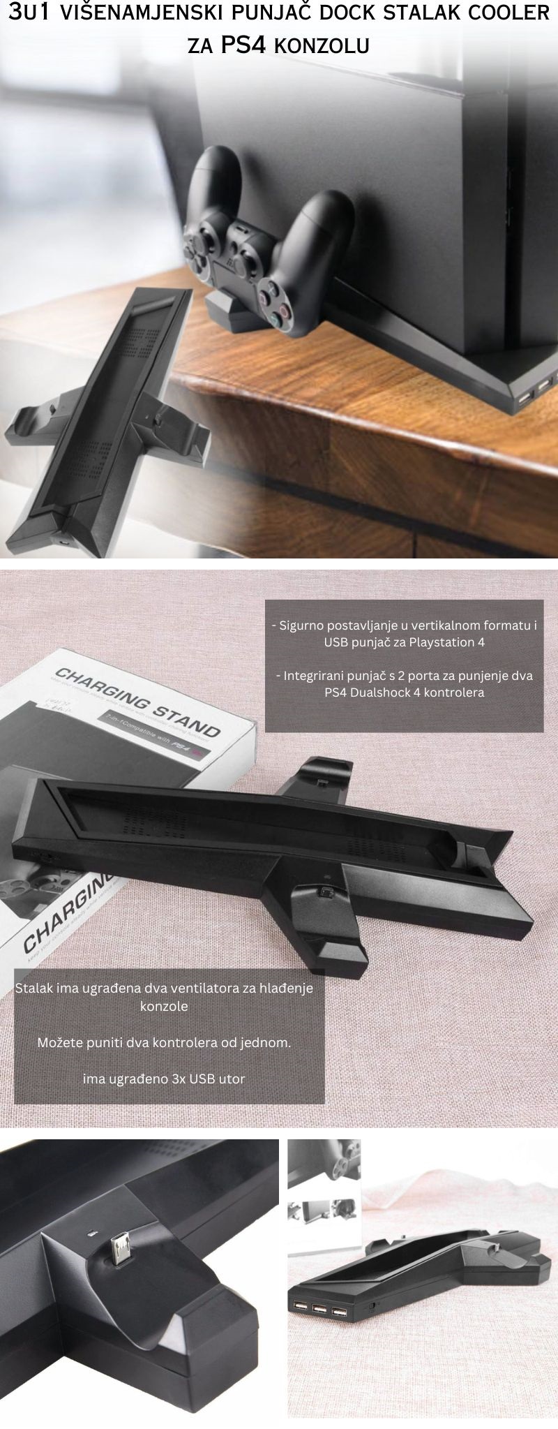 - Sigurno postavljanje u vertikalnom formatu i USB punjač za Playstation 4