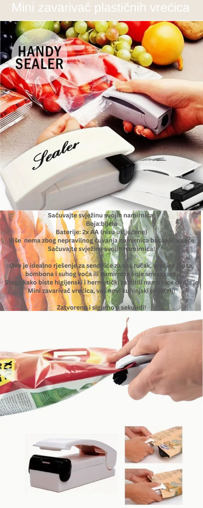 Poskrbite, da malica za v službo ali v šolo ostane sveža! Shranite hrano v priročne PVC vrečke in jih tesno zaprite s praktičnim mini varilnikom.