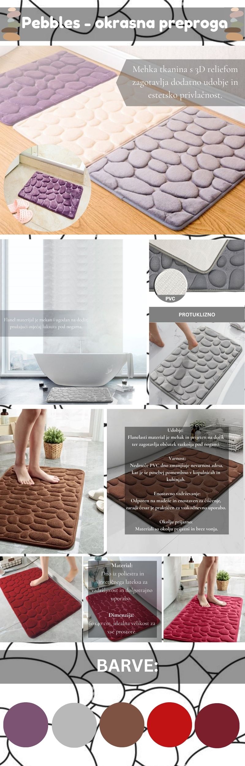 Naročite svojo dekorativno preprogo Pebbles danes in prinesite pridih razkošja in praktičnosti v svoj dom.