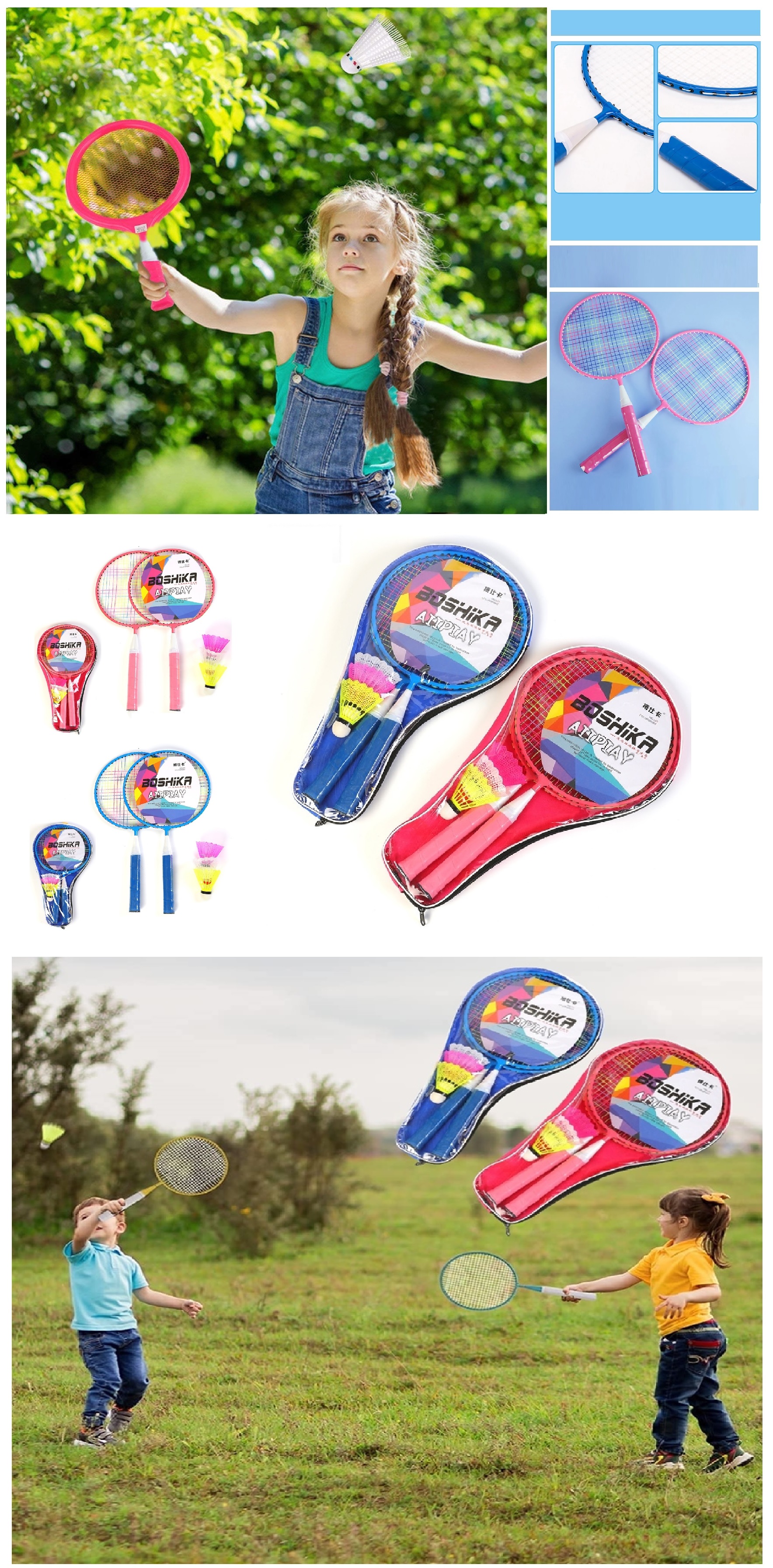 Dječji komplet reketa za badminton namijenjen je za razvoj osnovnih badmintonskih vještina djece 3-7 godina. Oblik glave reketa djeci omogućuje jednostavnije udaranje loptice. Manji grip omogućava lakše držanje reketa.