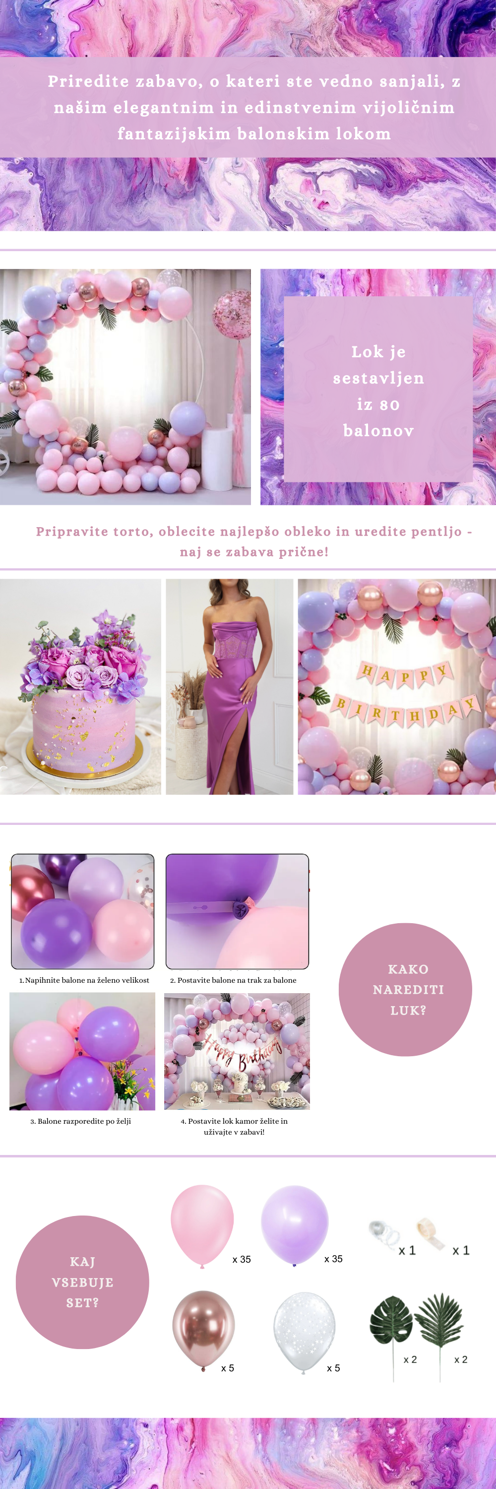 Balonski lok - Purple Fantasy (80 balona v kompletu)