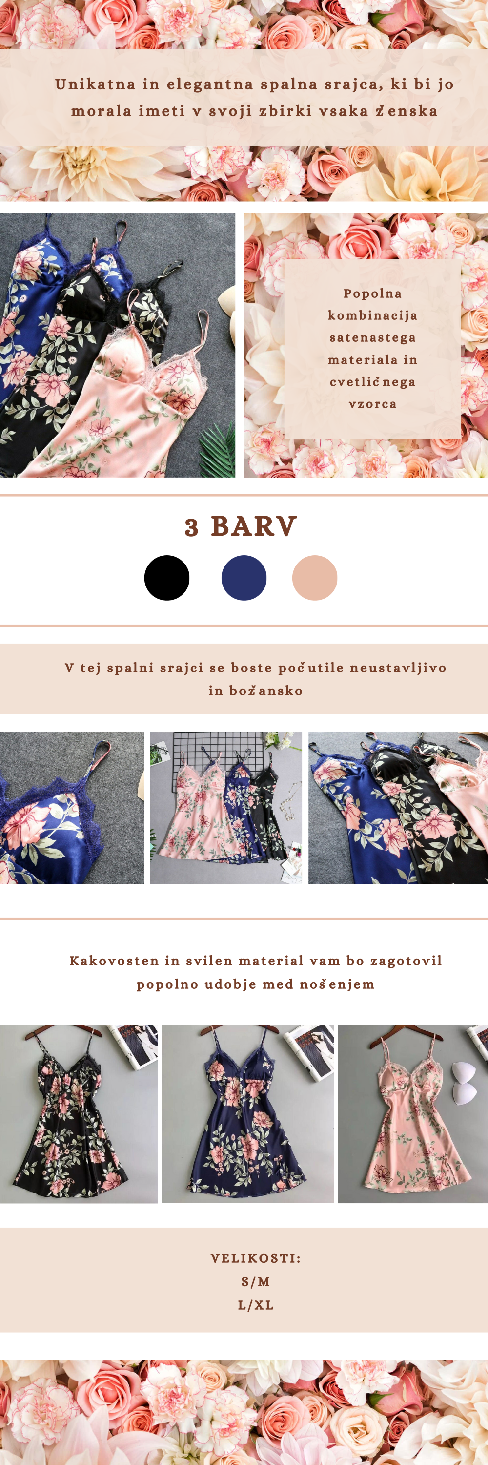Vsaka ženska potrebuje lepo, elegantno in edinstveno spalno srajco, kot je ta.- Material: izdelan iz koži prijaznega poliestra in satena, mehak in udoben za nošenje