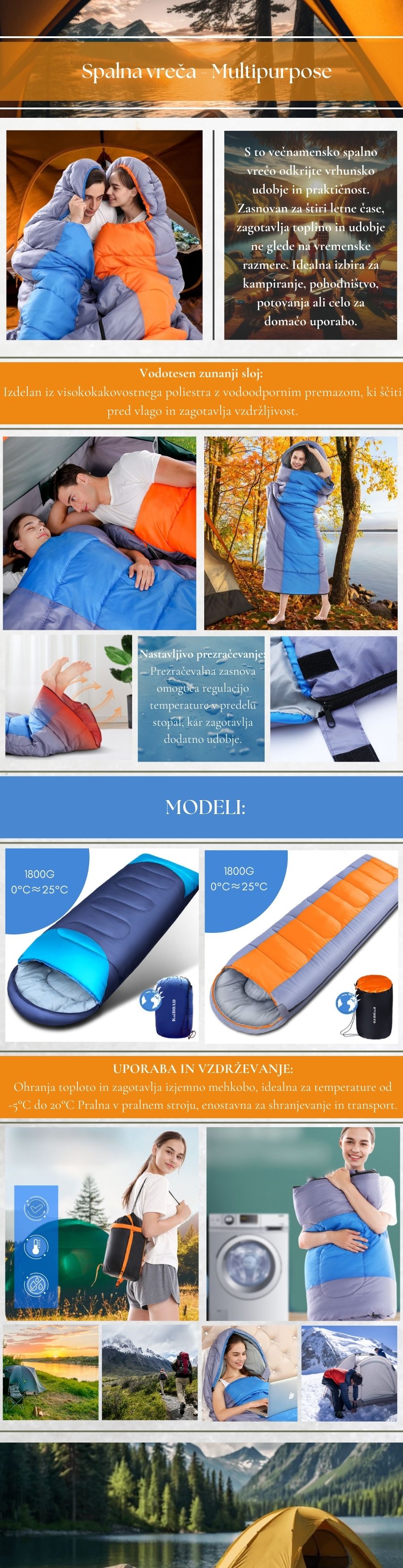 Popolna izbira za ljubitelje avantur in udobja – zagotovite si svojo večnamensko spalno vrečo še danes in bodite pripravljeni na vse priložnosti!