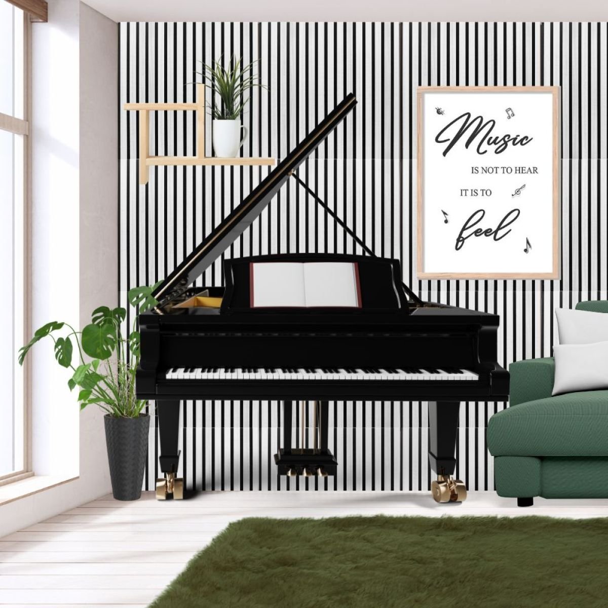 Zvočna absorpcija: Paneli učinkovito absorbirajo zvok, zmanjšujejo odmev in ustvarjajo tišje okolje – idealno za pisarne, studie, domače kinodvorane, glasbene prostore ipd.