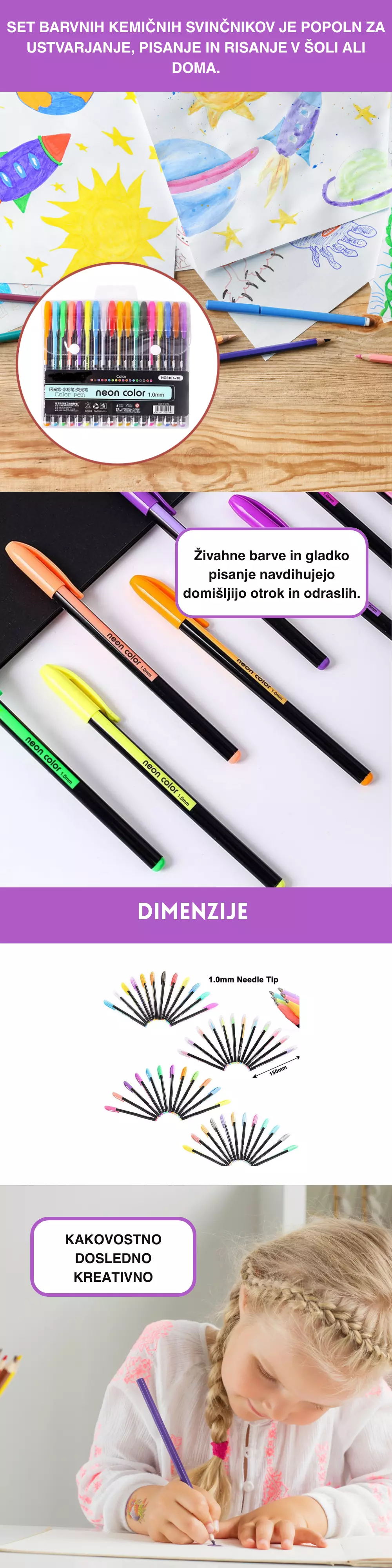 Komplet 18 kemičnih svinčnikov - za šolo, pisarno ali hobije