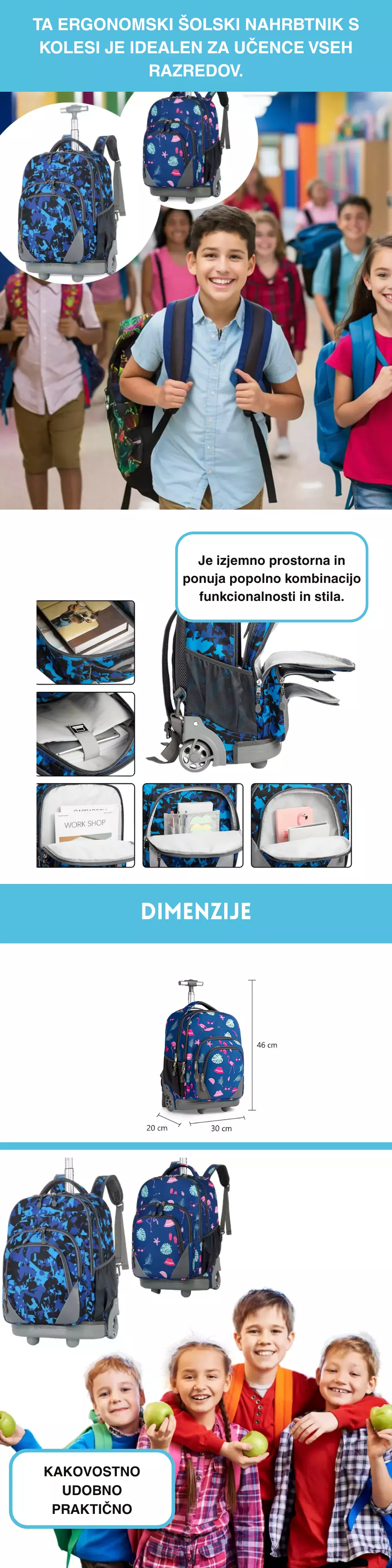 Šolski nahrbtnik s kolesi – prostoren, praktičen in udoben za nošenje