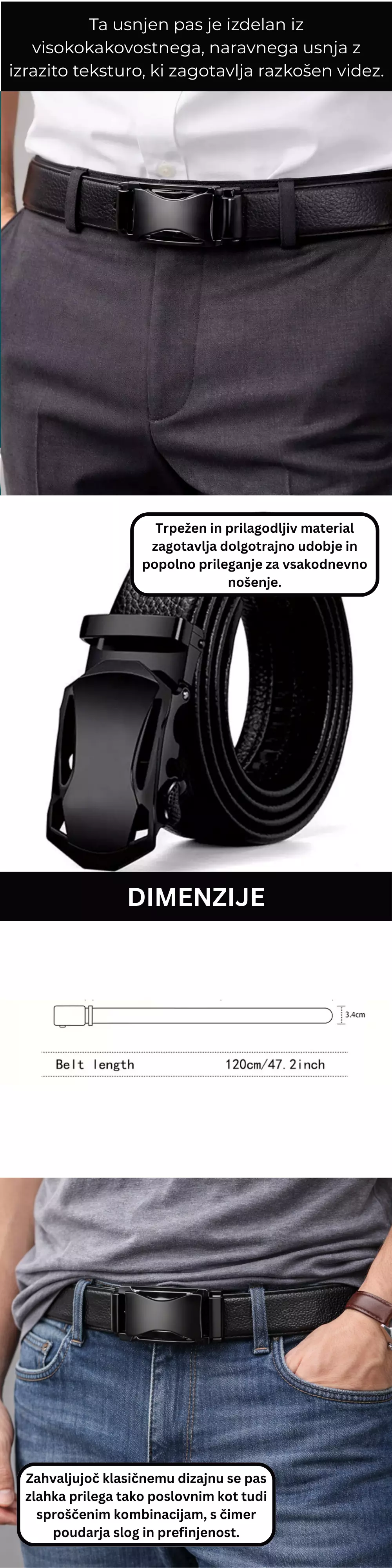 Moški elegantni pas z avtomatsko zaponko