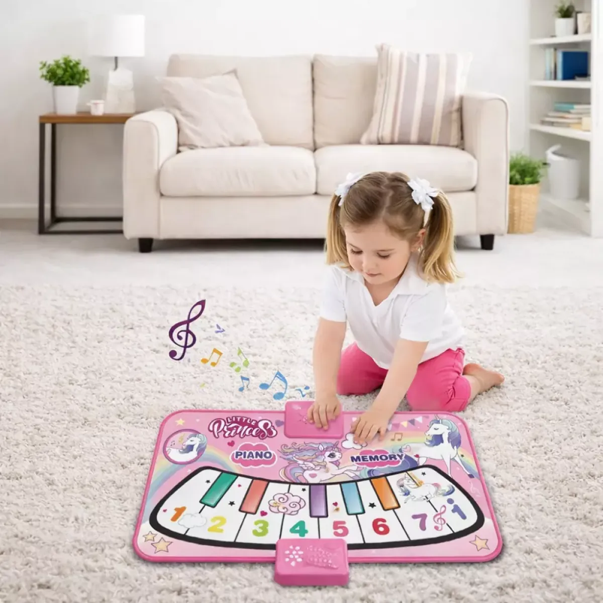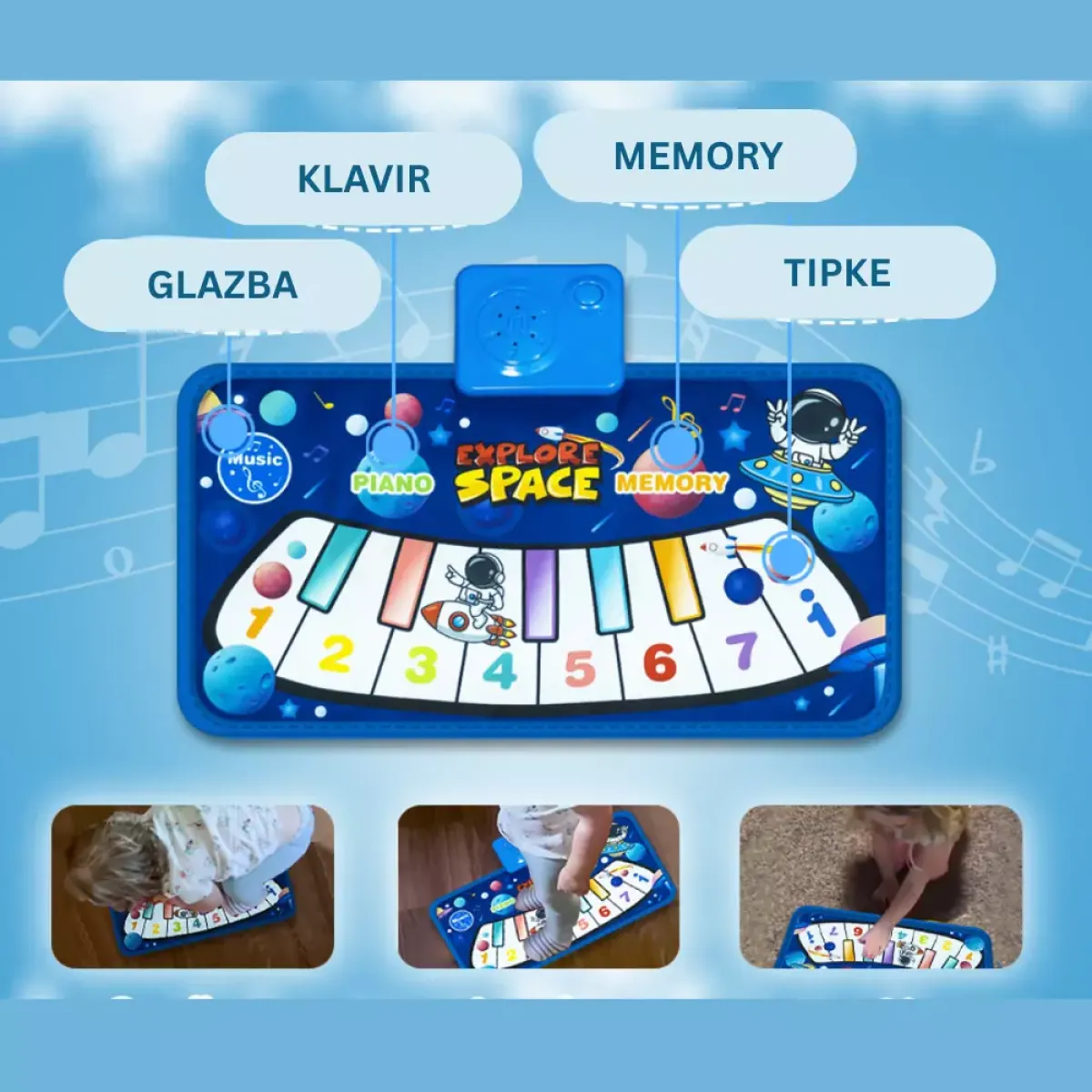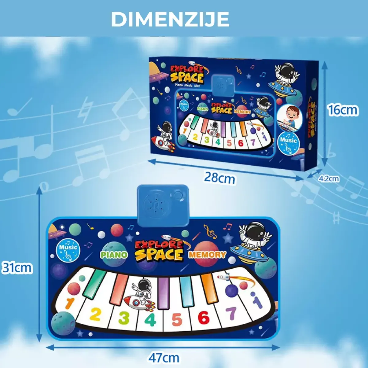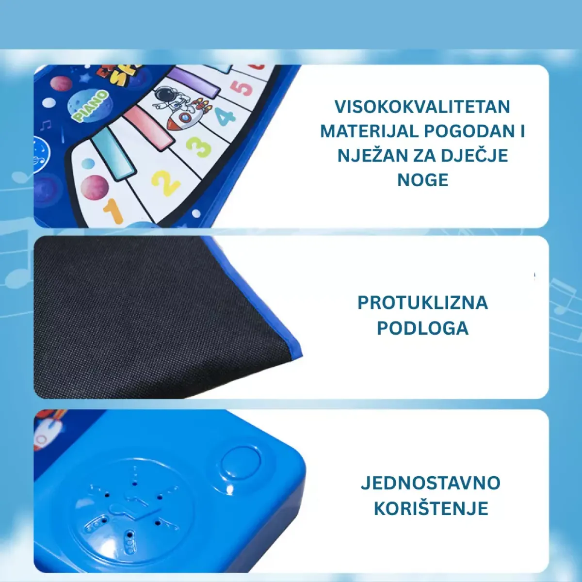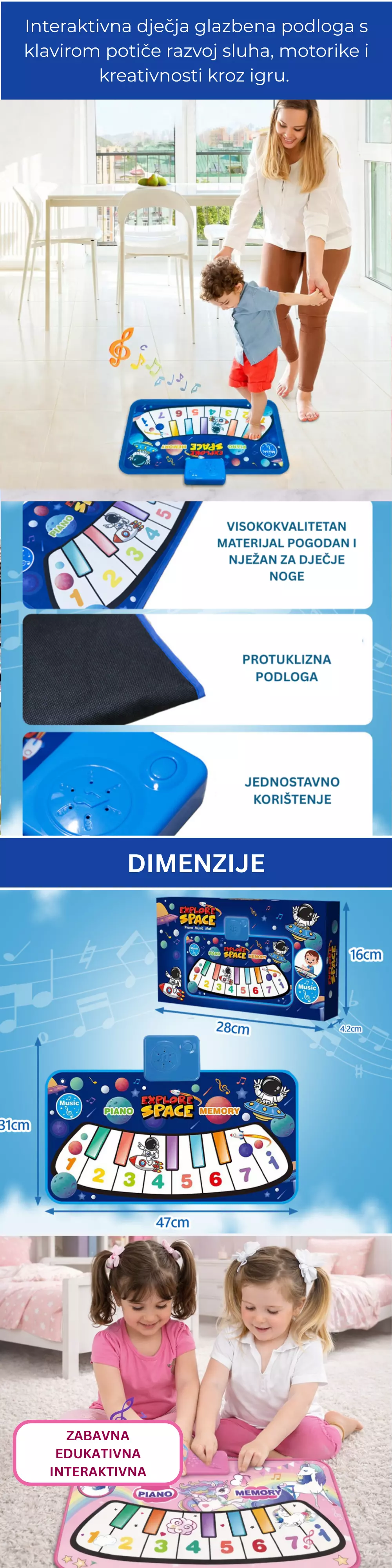 Interaktivna dječja glazbena podloga s klavirom potiče rano učenje, razvoj motorike i ljubav prema glazbi već od najranije dobi. Šareni klavir s brojevima, zvukovima i melodijama omogućuje djeci učenje kroz igru, dok mekana podloga pruža sigurnost i udobnost tijekom igranja.