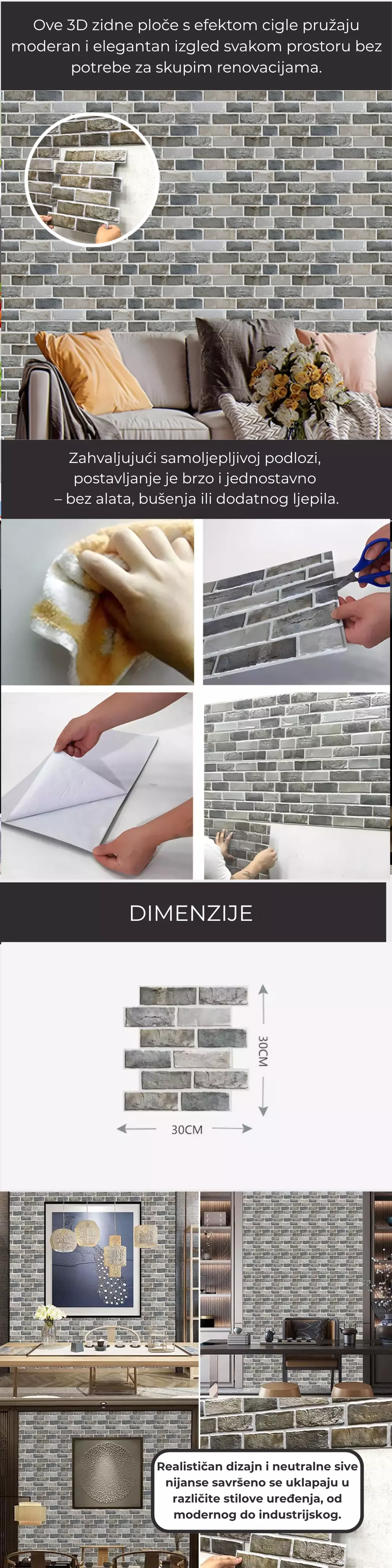 Luksuzne 3D samoljepljive zidne ploče – imitacija sive cigle