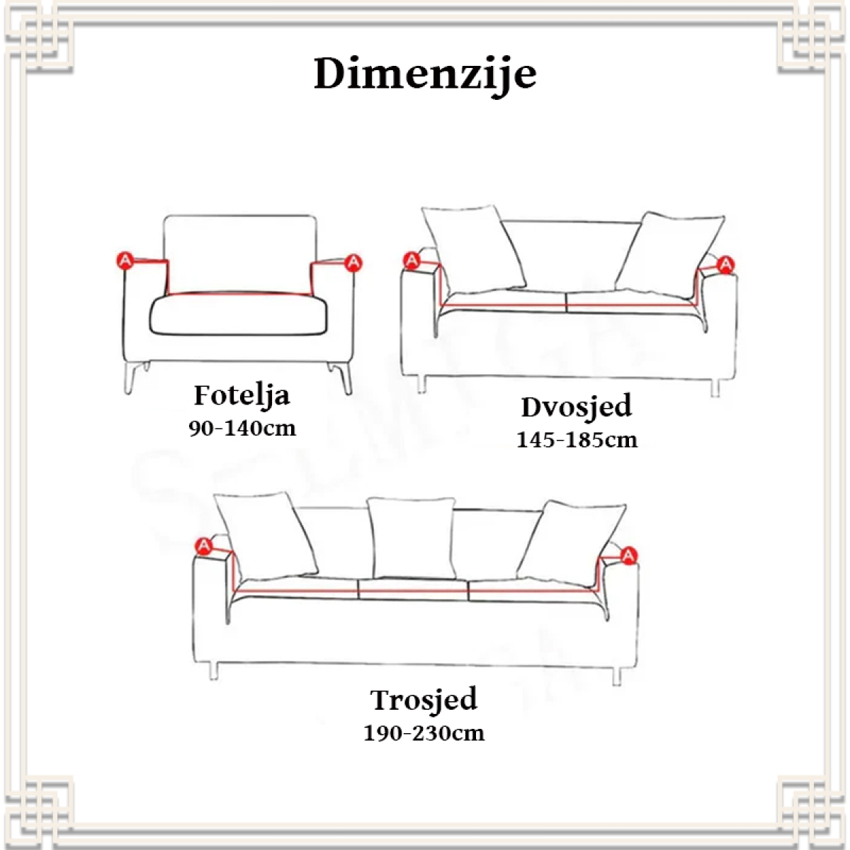 • Elastični dizajn – zahvaljujući visokoj elastičnosti, navlake se lako razvlače i prilagođavaju raznim veličinama i oblicima kauča i fotelja.