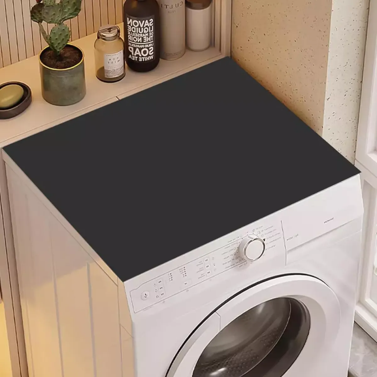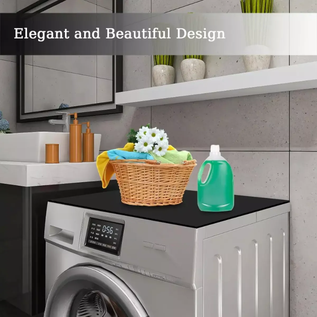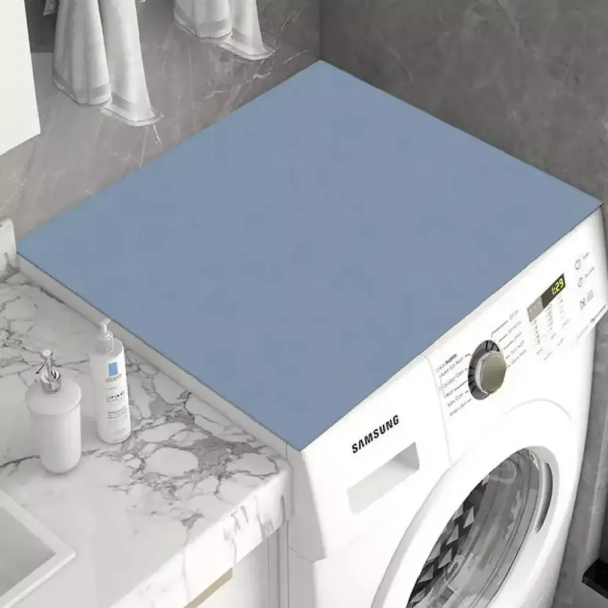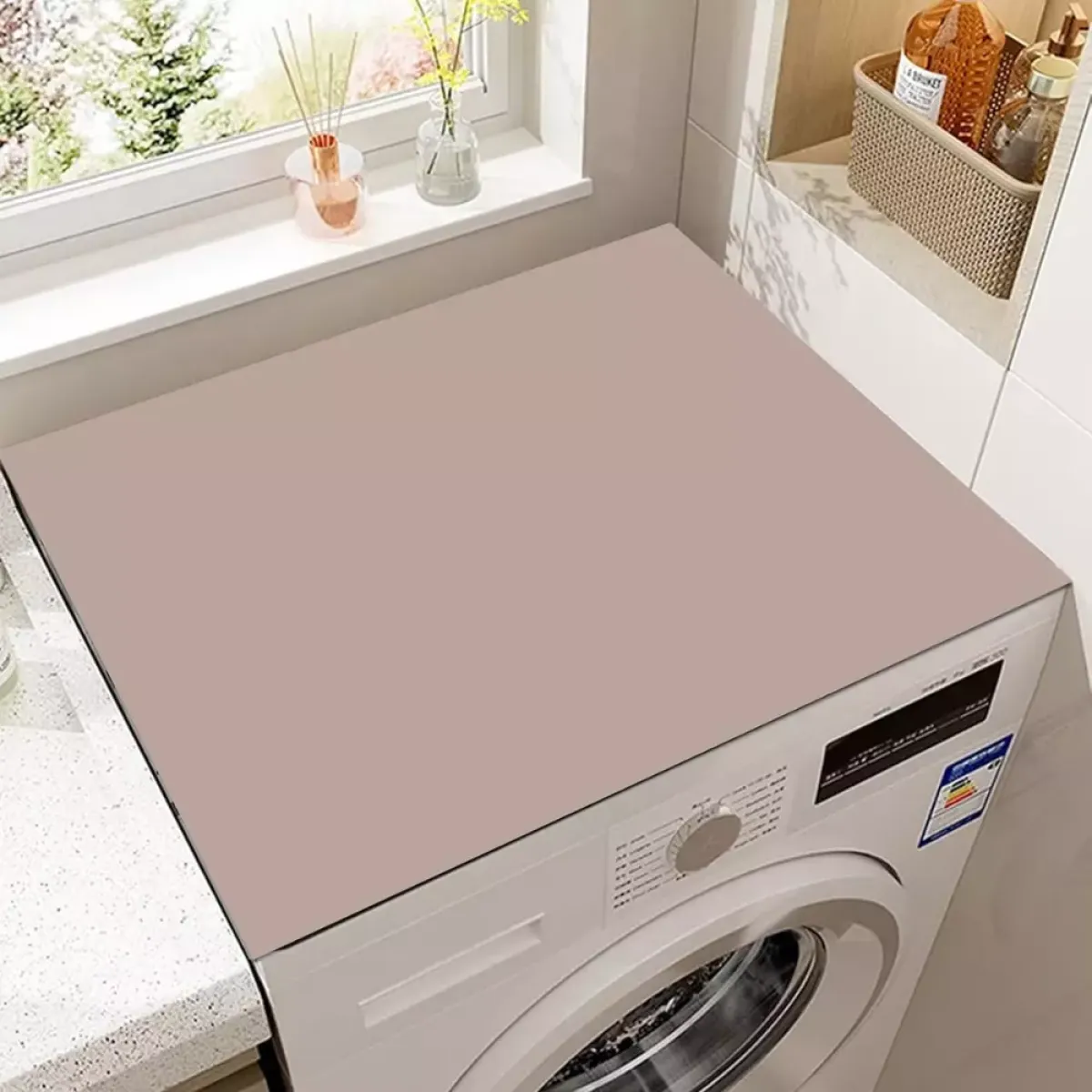Jednobojna zaštitna navlaka za perilicu rublja izrađena je od mekanog, upijajućeg i izdržljivog materijala koji učinkovito štiti površine od prašine, vlage i ogrebotina. Zahvaljujući elegantnom i modernom dizajnu, savršeno se uklapa u svaku prostoriju – kupaonicu, kuhinju ili praonicu. Ova višenamjenska podloga može se koristiti i za druge uređaje poput mikrovalnih pećnica, hladnjaka ili sušilica rublja.