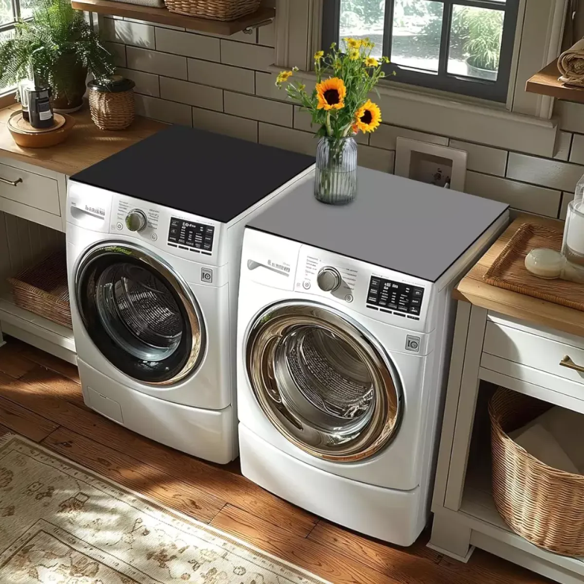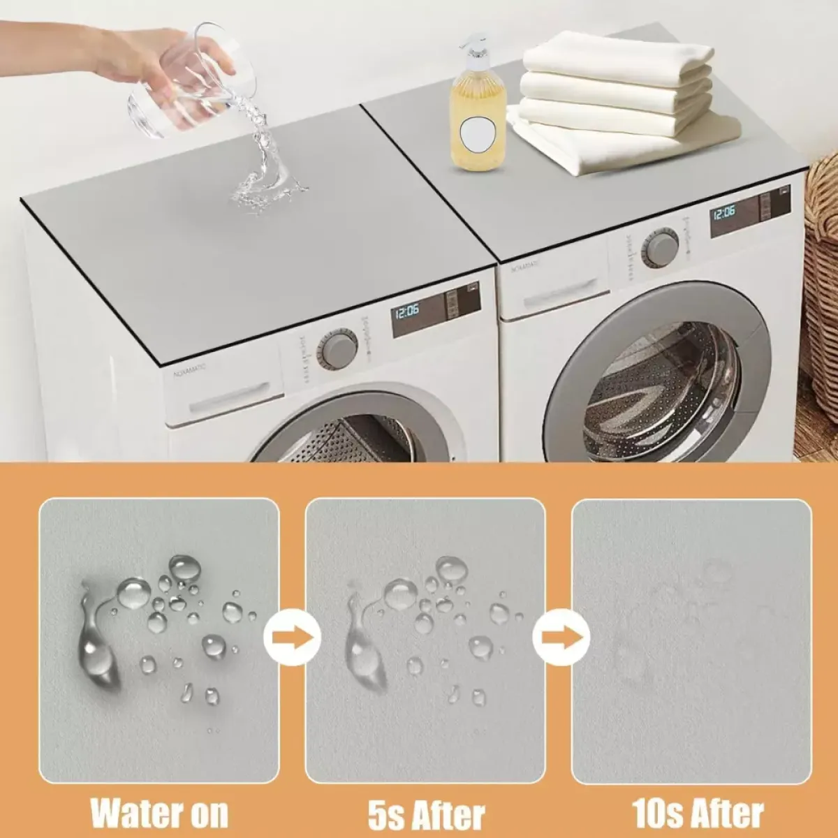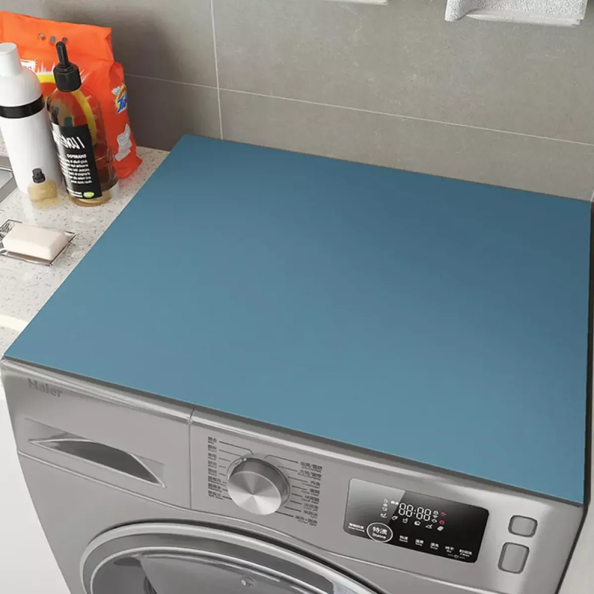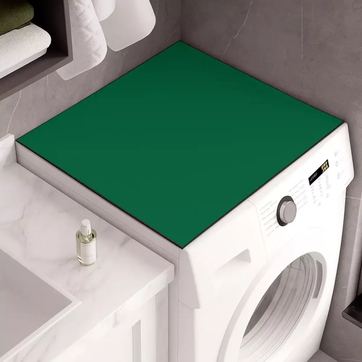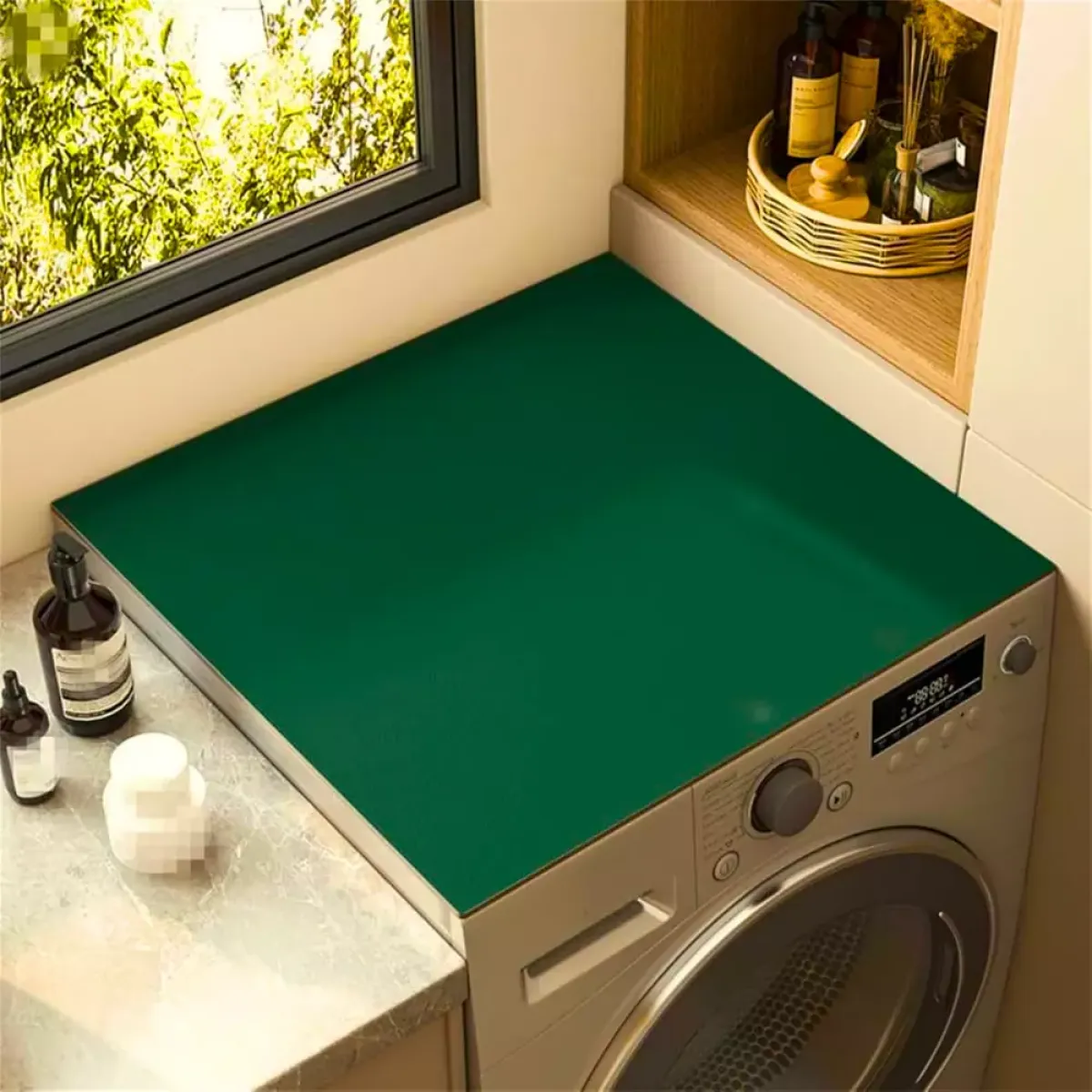 Jednobojna zaštitna navlaka za perilicu rublja izrađena je od mekanog, upijajućeg i izdržljivog materijala koji učinkovito štiti površine od prašine, vlage i ogrebotina. Zahvaljujući elegantnom i modernom dizajnu, savršeno se uklapa u svaku prostoriju – kupaonicu, kuhinju ili praonicu. Ova višenamjenska podloga može se koristiti i za druge uređaje poput mikrovalnih pećnica, hladnjaka ili sušilica rublja.