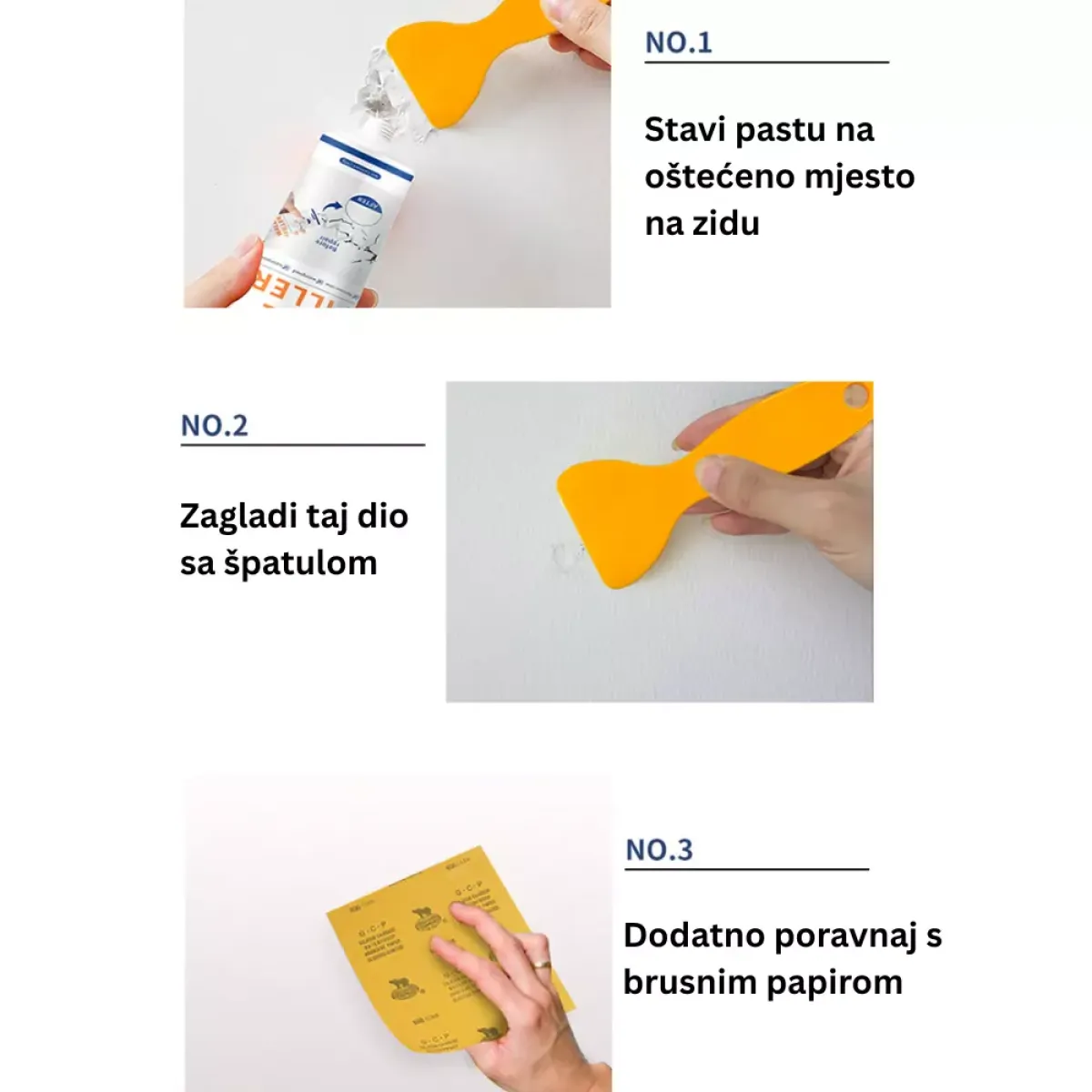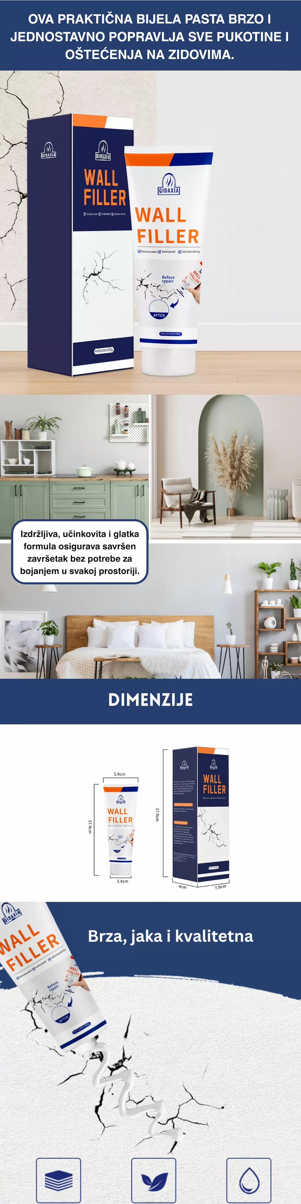 • Učinkovito prekriva pukotine, rupe i ogrebotine