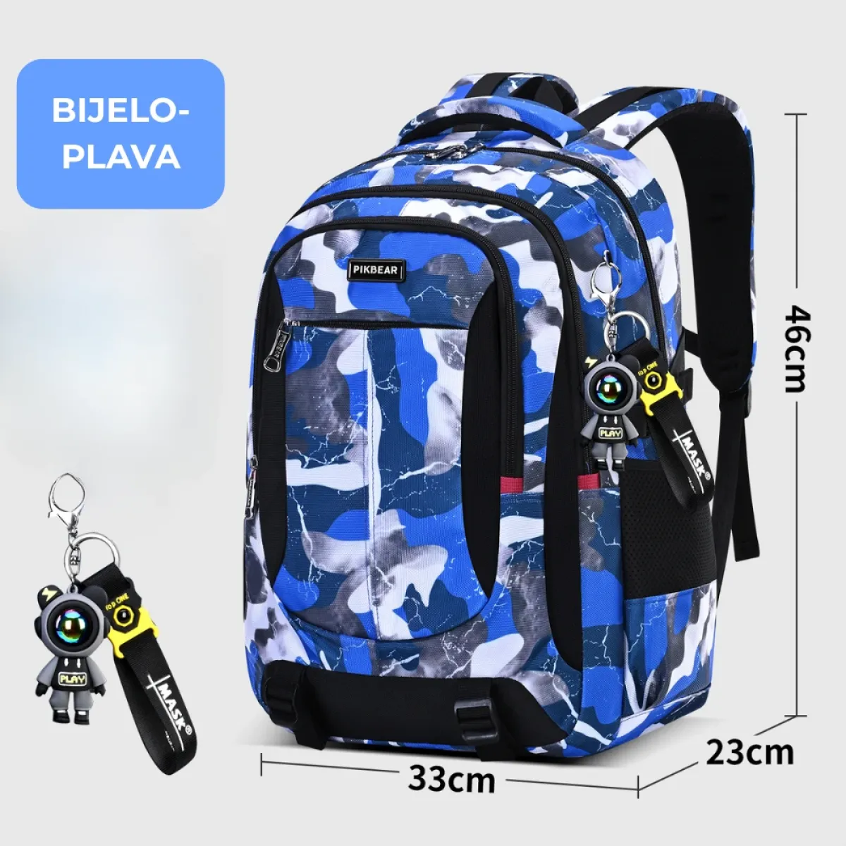 Školski ruksak velikog kapaciteta idealan je za učenike osnovnih i srednjih škola. S dimenzijama 46 × 33 × 23 cm pruža dovoljno prostora za knjige, bilježnice, pribor, kao i dodatnu opremu. Izrađen je od kvalitetnog, vodootpornog i izdržljivog materijala, što ga čini dugotrajnim i praktičnim izborom za svaki dan. Ergonomski dizajn i udobne naramenice osiguravaju lagano i ugodno nošenje, dok više pretinaca omogućuje savršenu organizaciju.Prednosti