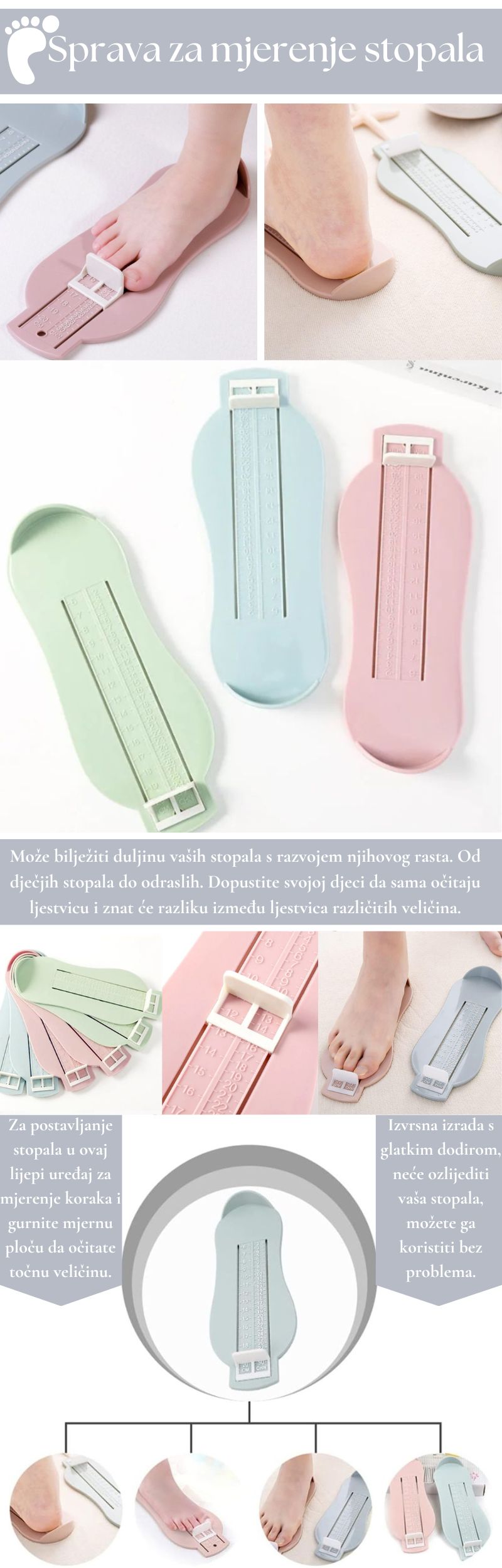 - Jednostavna Upotreba: Dizajniran za brzo i jednostavno mjerenje veličine stopala.