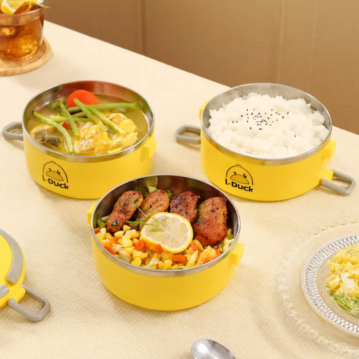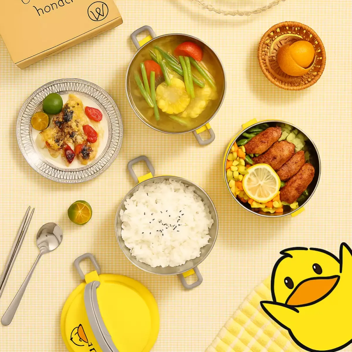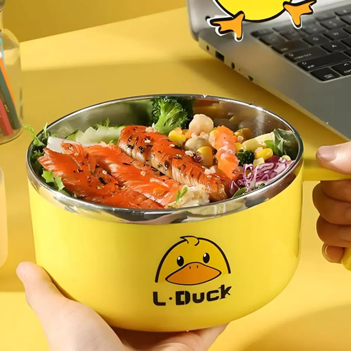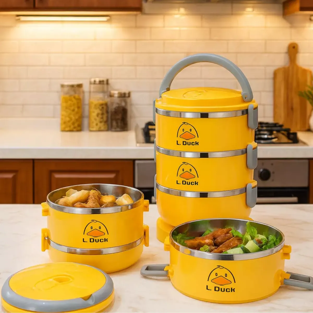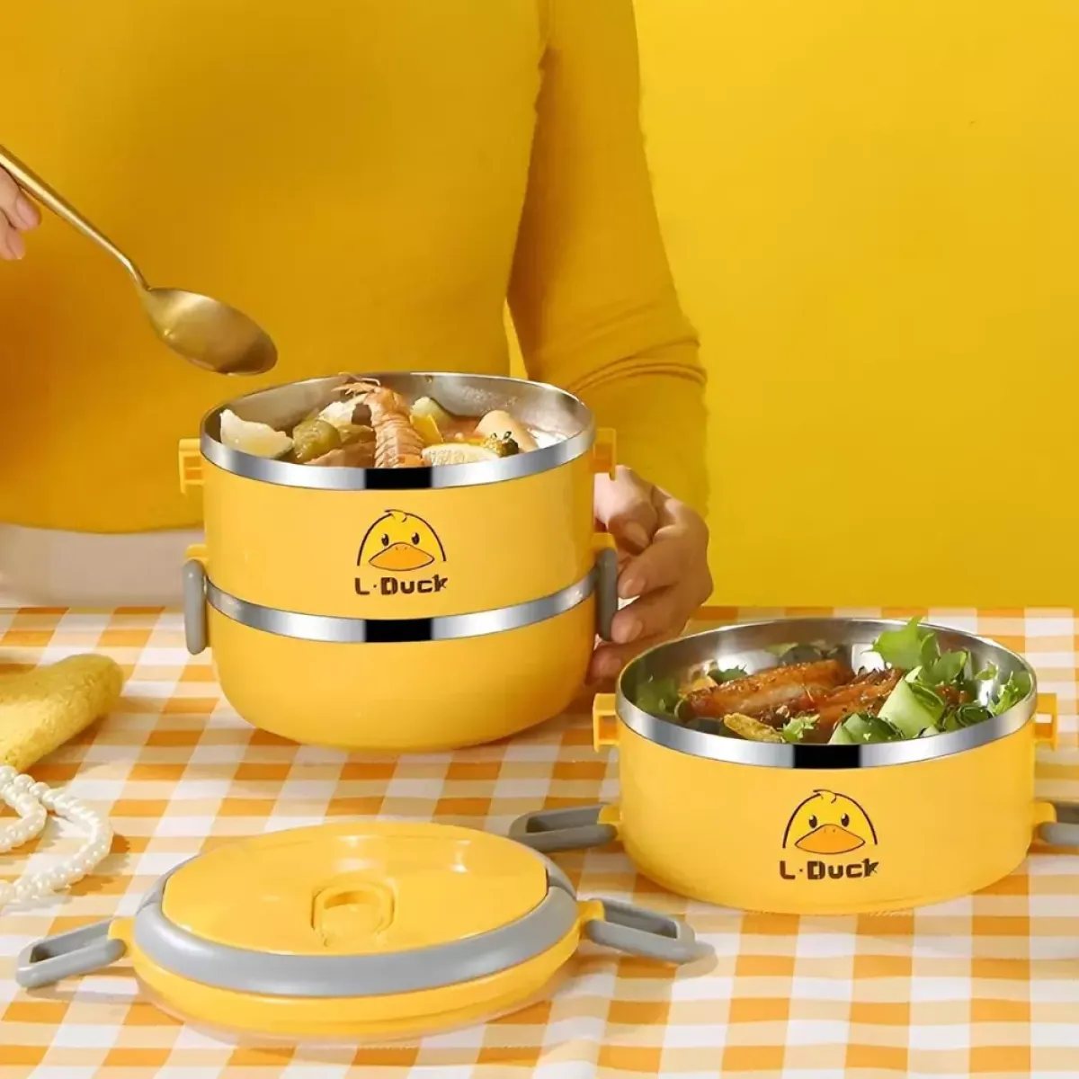 Praktična višeslojna posuda za hranu s motivom patke L-Duck savršena je za nošenje toplih i hladnih obroka. Izrađena od kvalitetne plastike s termoizolacijom, održava svježinu hrane i sprječava prolijevanje. Zahvaljujući kompaktnom dizajnu i ručki za nošenje, idealna je za posao, školu, izlete ili putovanja.